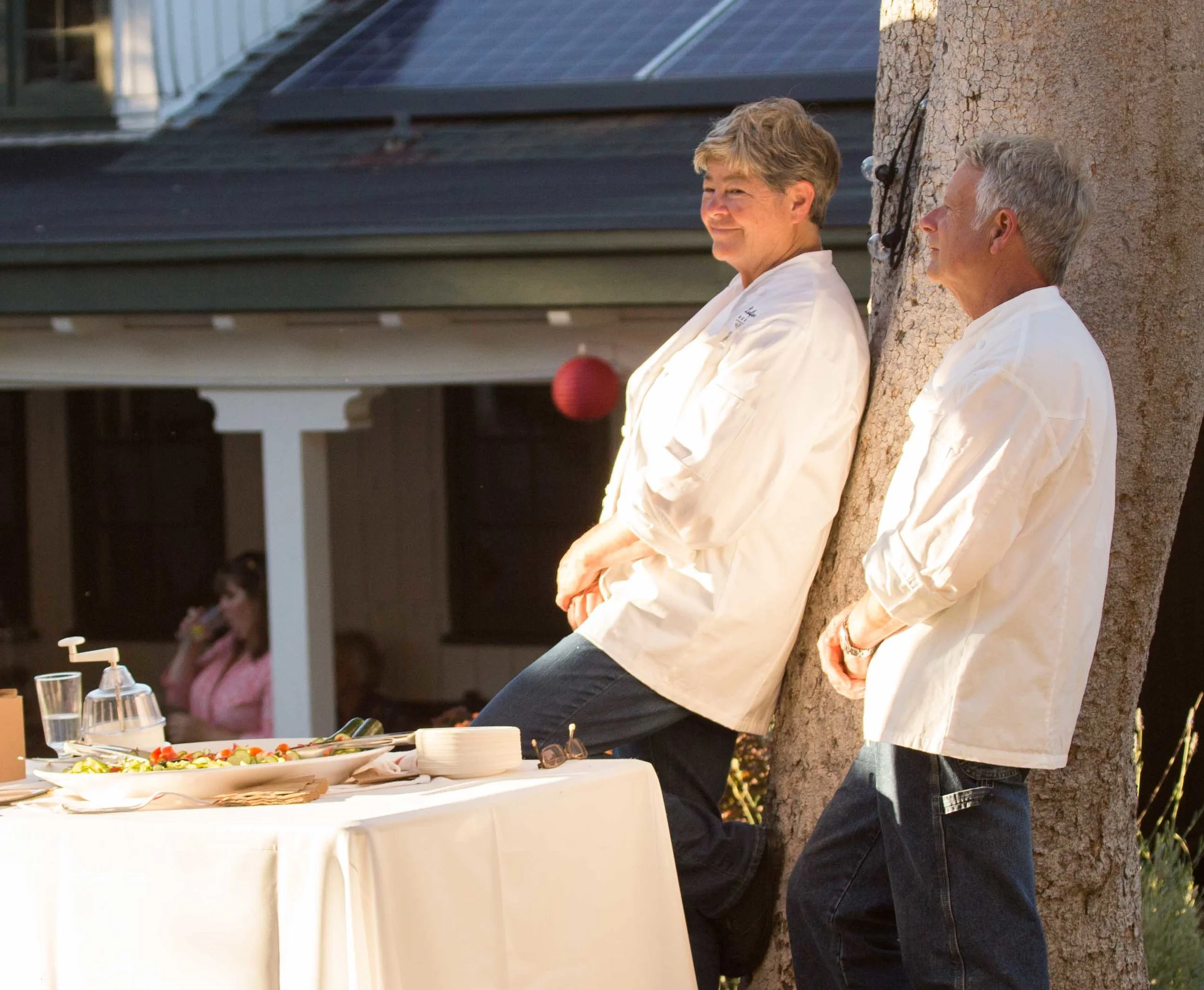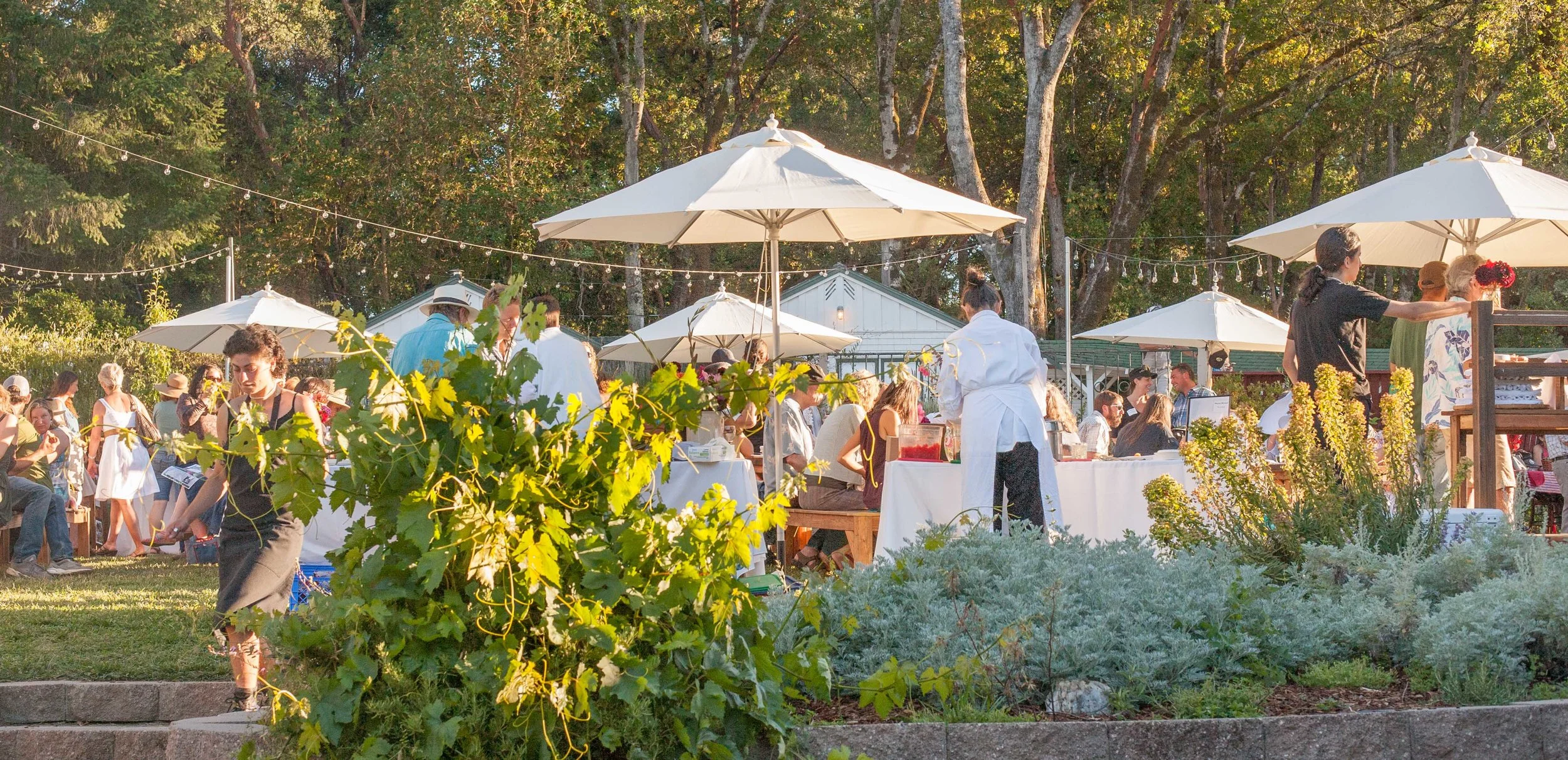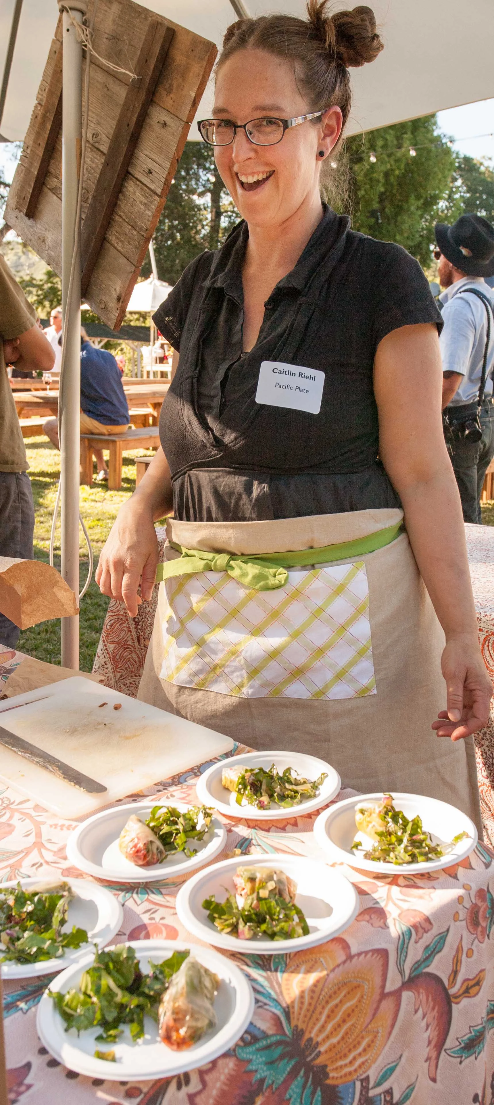 One of the highlights of the Good Farm Fund’s fundraising this year was the recent Farm-to-Table Benefit at Yokayo Ranch, which raised over $8,000 for the Farm Grant Program. This culinary extravaganza gathered more than twenty local chefs and paired each of them with a specific farm. The partner- ships produced divine dishes such as a chilled green tomato gazpacho from a match between Elevensies Restaurant and Green Uprising Farm. Chefs Liz and Kelvin Jacobs, of Wildfish restaurant created a salmon ceviche with fava bean puree from the Noyo Food Forest. The participating chefs came from around Mendocino and Lake Counties and donated a huge amount of time and effort to make the evening a success.