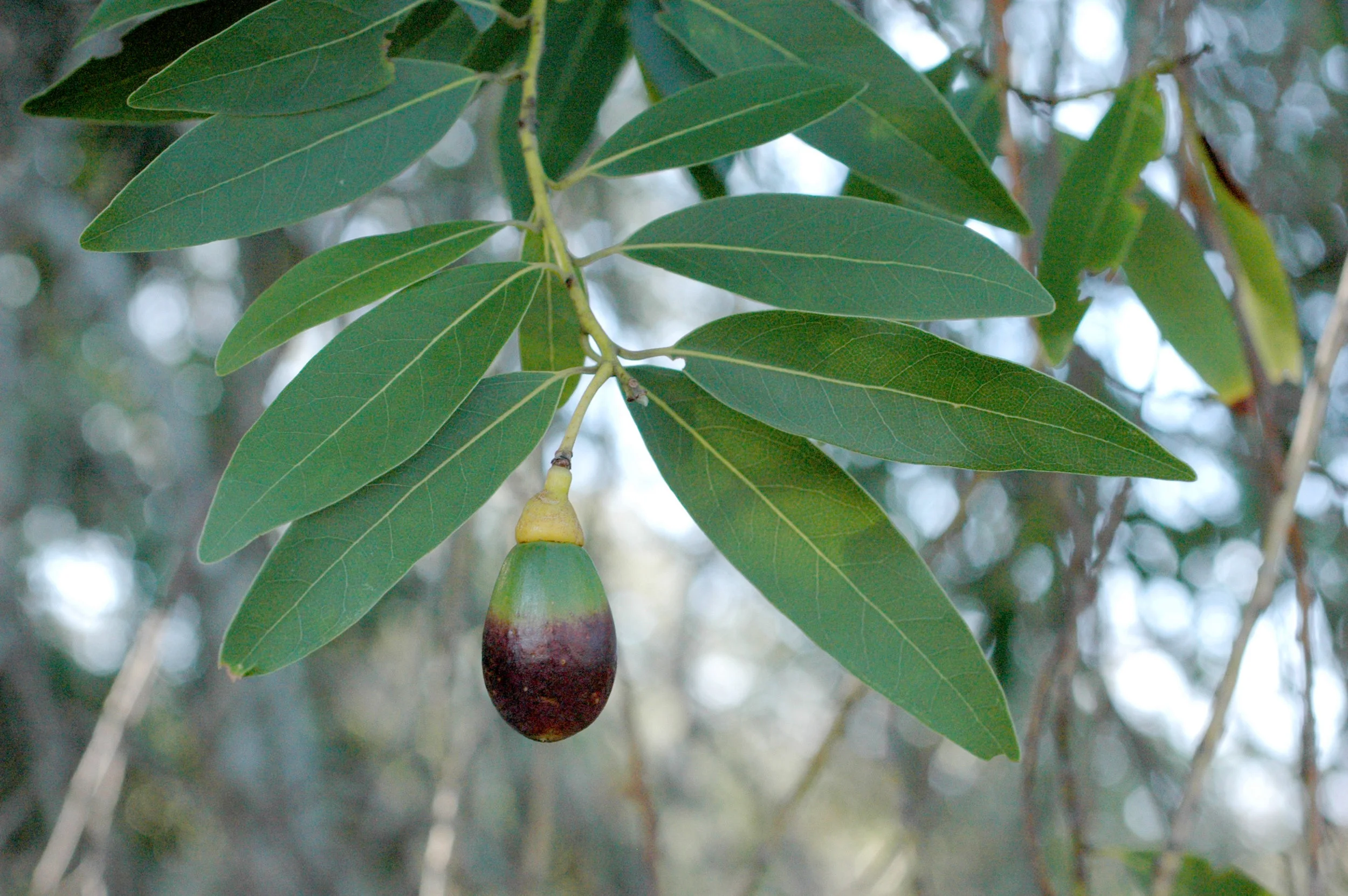 The California Bay Laurel (Umbellularia californica) is a tree found throughout our bioregion. (It is also known as Pepperwood and Myrtlewood.)