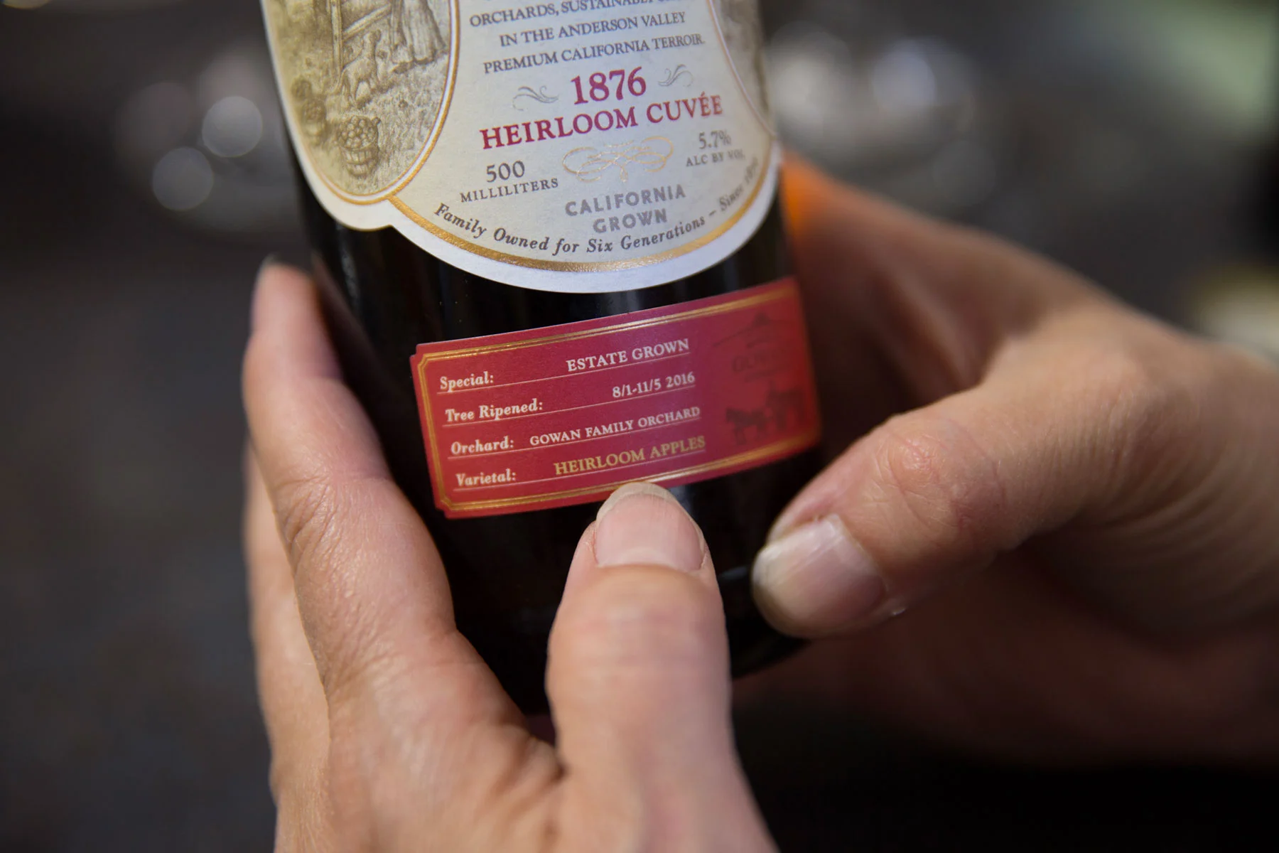 I was treated to a tasting at the cidery after our interview. We sat comfortably at the end of shoots—an artifact from the packing era where, for years, apples had been sorted and crated. Sharon introduced me to three of the Gowan fine ciders. She emphasized that each cider is a “premium cider, fruit forward, terroir driven, and that’s probably why they’re winning such high awards at cider and wine competitions. You can taste the different flavors of the actual apple!” I find their fine ciders delicious, with no two alike. It was easy to distinguish between the Gravenstein and Sierra Beauty. The 1876 Heirloom Cuvée was my favorite. It’s a complex, light, semi-dry blend with just a hint of apple sweetness, a perfect chilled cider to sip on a hot summer day.