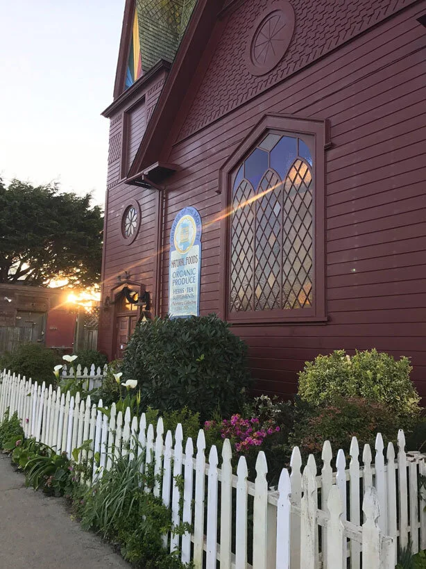 Corners of the Mouth natural food store has been serving the coast since 1976. Located in the village of Mendocino, Corners is housed in a 19th century former Baptist church. In between ancient stained glass windows, a vaulted ceiling, and a choir loft, the store is brimming with fresh local produce, bulk herbs, and organic groceries.