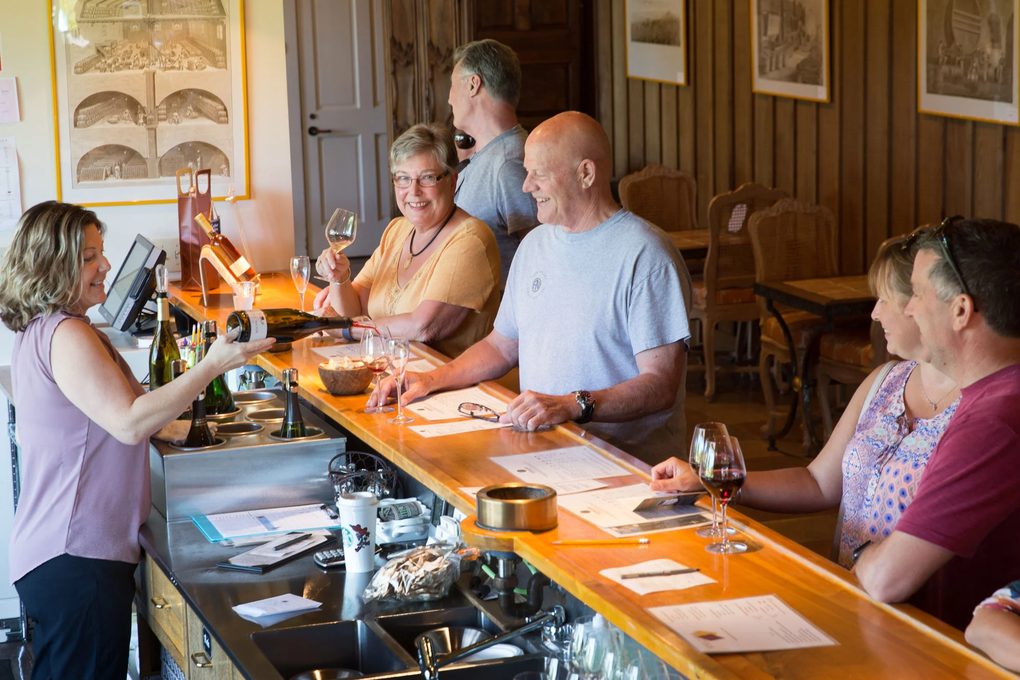 Roederer built their winery and tasting room into a hill nestled in the shade of trees and surrounded by the lush Roederer Estate vineyards. The beautifully-designed tasting room is bordered by flowers and shrubs and is staffed with warm and knowledgeable people who help provide guests with the Roederer experience. A large, verdant lawn combined with patio seating and umbrellas are right outside, and the grass beckons children and dogs to frolic as adults enjoy their wine. Roederer has created an ambience which encourages relaxation and enjoyment of the location, fellow travelers, and their crisp and elegant sparkling wine.