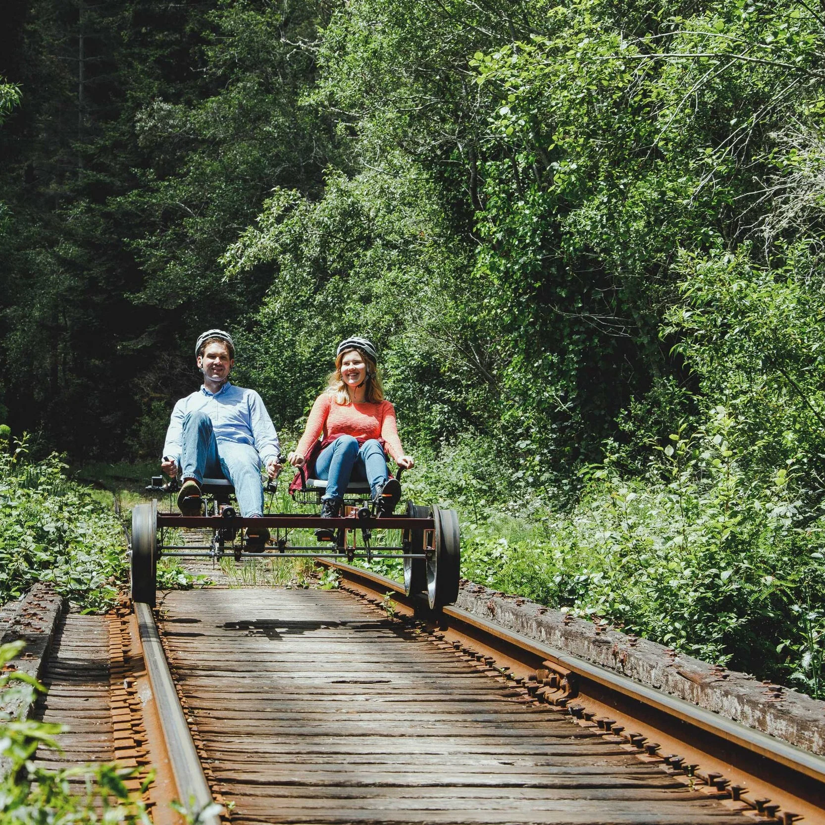Climb aboard the Skunk Train’s two-person rail bikes for an electric-powered adventure into the redwoods. The two hour journey includes a stop at Glen Blair Junction for a picnic or mini-hike. Bring water and layer up for this exciting open-air excursion along the rails.