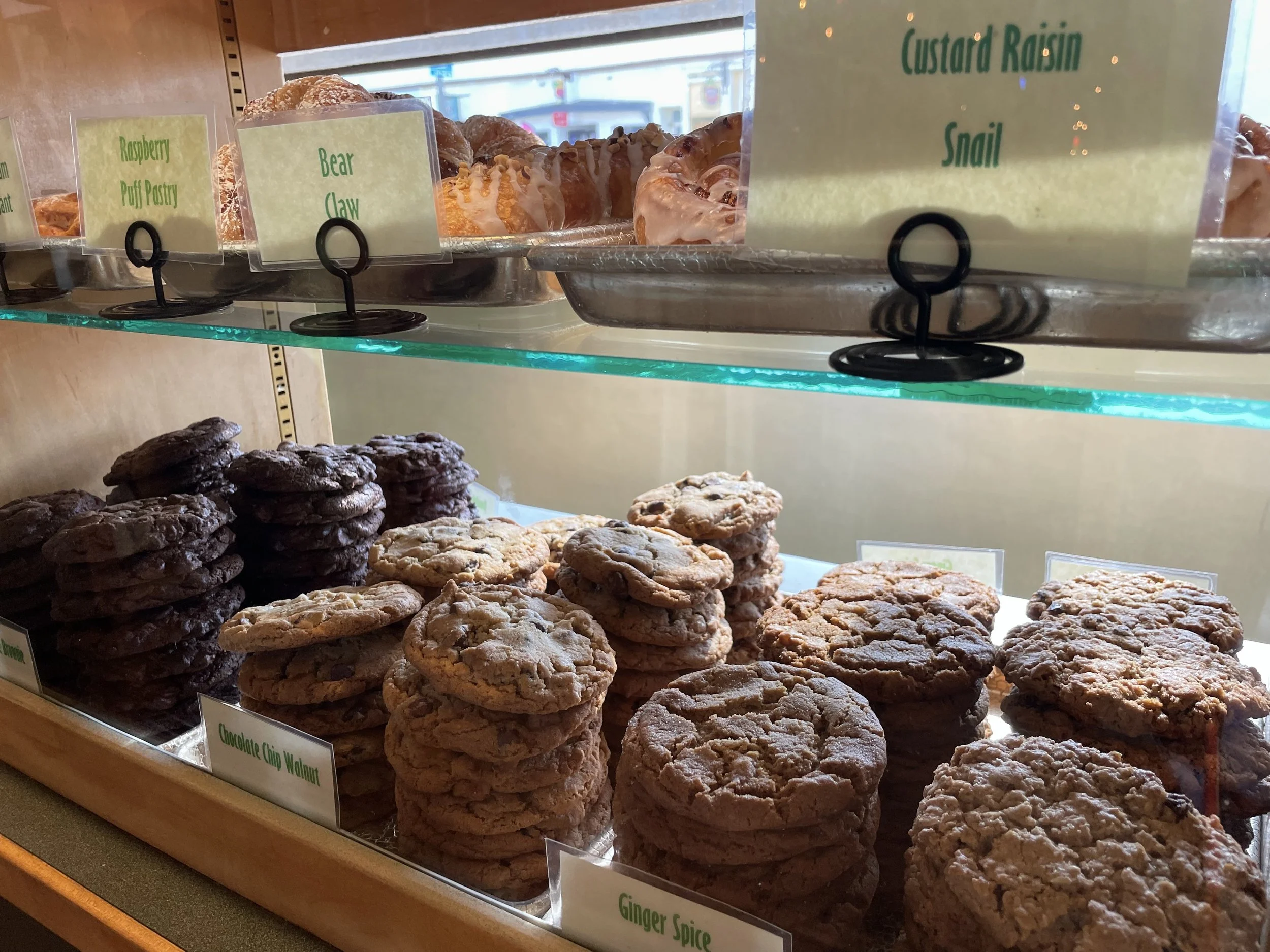 In the beginning, cookies were baked a dozen or so at a time using a household mixer, but the operation has grown considerably. “We bake ten varieties of cookies daily, with a different special cookie featured each day, including favorites such as Backpacker cookies, traditional Scottish shortbread, and of course chocolate chip cookies.” For her part, Wendy finds herself drawn to the Backpacker cookies—packed with oats, raisins, coconut, chocolate, butterscotch, and walnuts—as well as the chocolate shortbread with chocolate chips, while Beverlee prefers the Mocha Buzz, a caffeinated celebration of coffee and chocolate. They offer treats such as scones, muffins, and espresso drinks as well, with a host of both regular flavors and rotating specials.