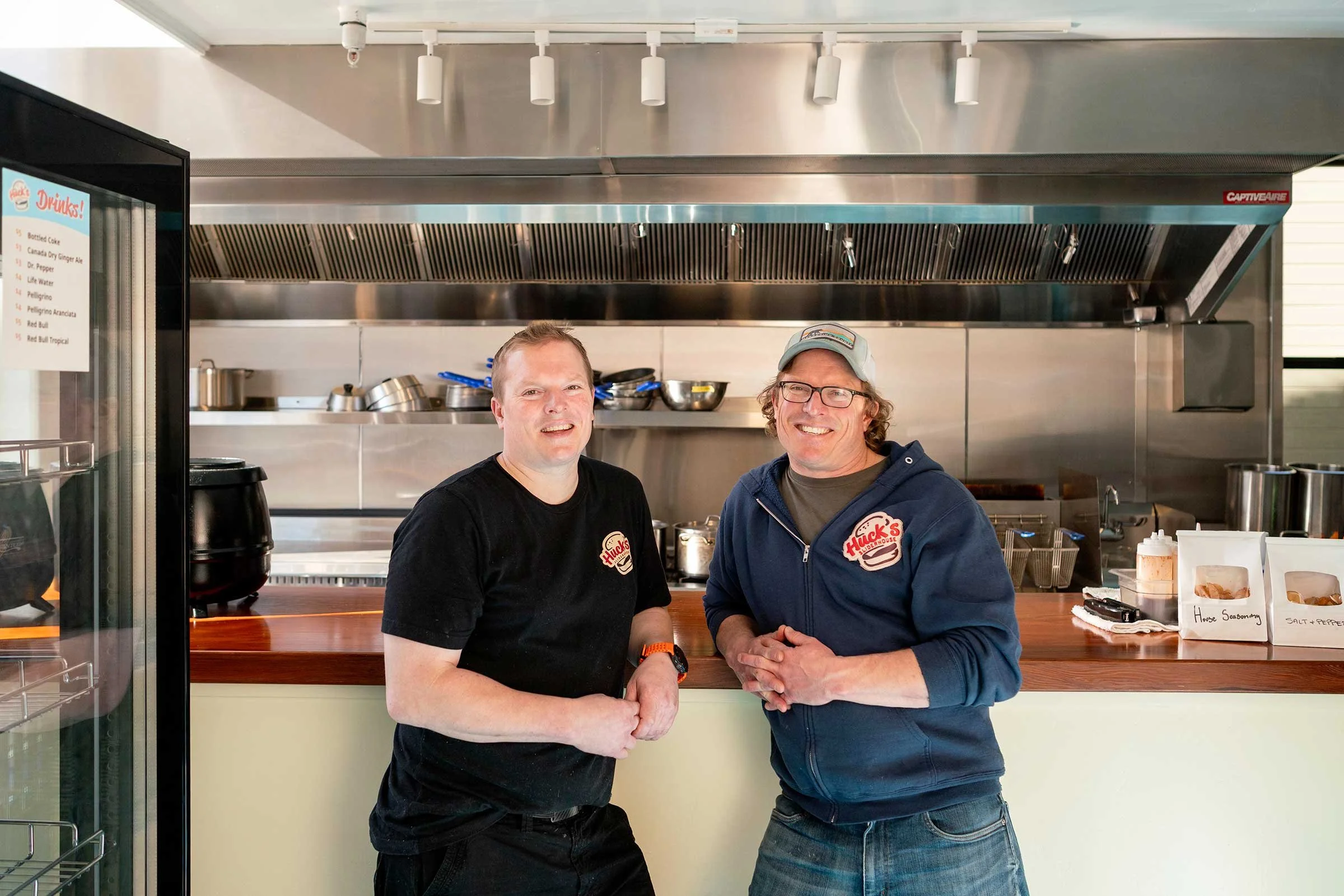 Mike always thought his brother’s food was “some of the best I’ve ever had,” and that he would love to start a business with him. Eric was up for the challenge, saying, “If you find someplace for me to cook, I’ll come out and run the kitchen.” In 2024, when Mike spotted a food truck for sale, he invited his twin to come out west—only to see it get snapped up before they could even make an offer. Not long after that, they found an empty storefront on Laurel Street just down the block from the Skunk Train. Though it was previously a retail store with no kitchen, the location was ideal and the Huckleberry brothers were motivated to do what it took to create a home for their slider shop. This meant essentially building a restaurant from scratch. The building owner and his wife supported the vision, and the team got to work.
